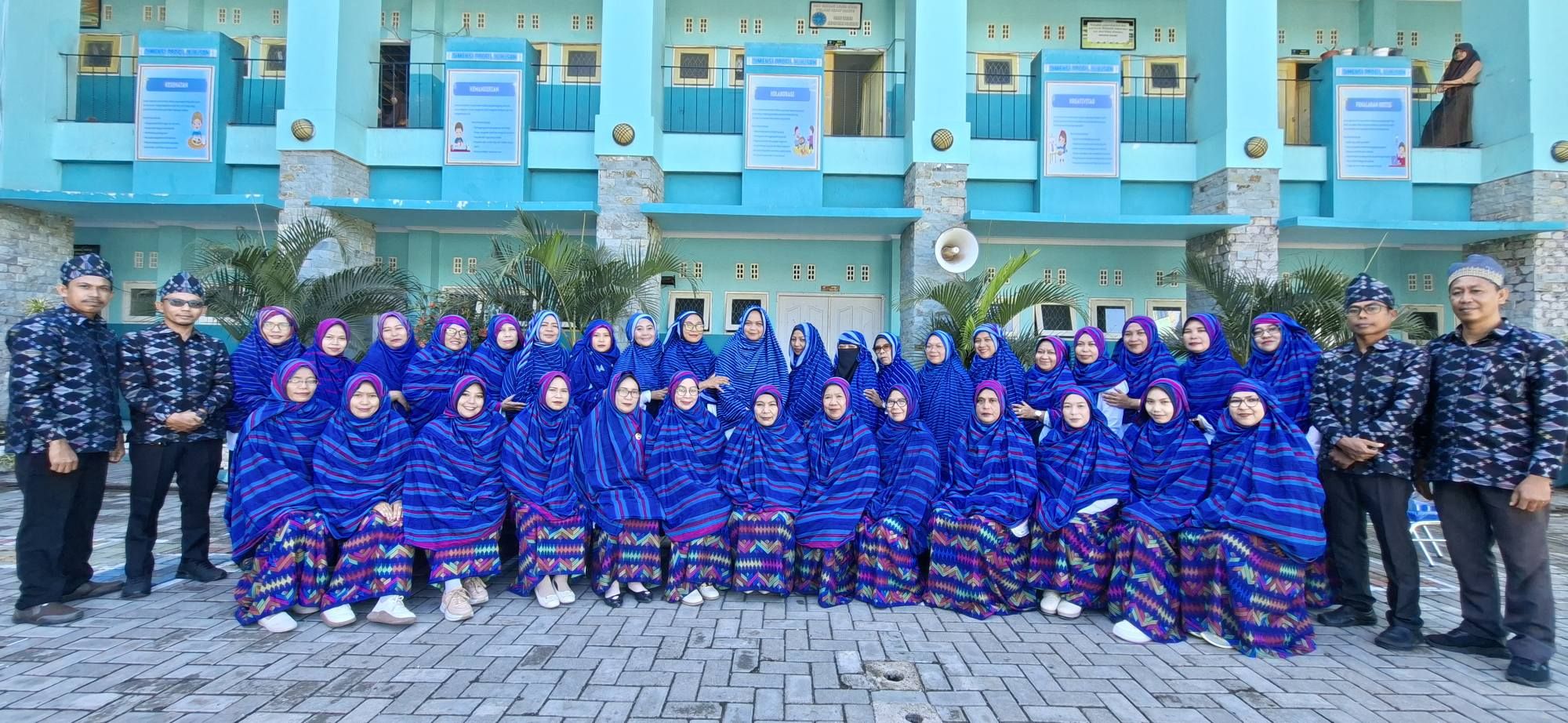 Kota Bima. Dalam balutan kain tenun dengan motif Gugundu dan Tembe Nggoli yang berwarna-warni, para guru tampak anggun dan gagah. Para guru perempuan juga memperagakan gaya Rimpu, busana khas perempuan Bima yang melambangkan kesantunan dan kehormatan.