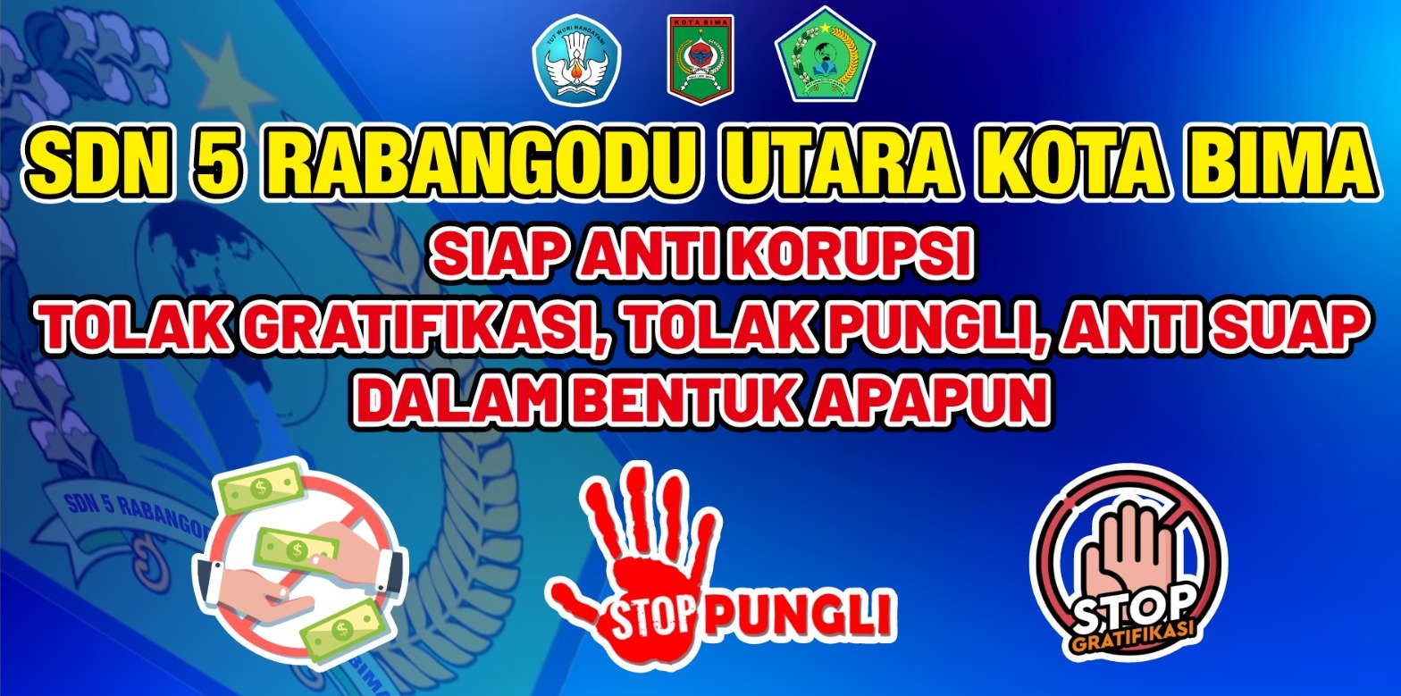 SDN 5 Rabangodu Utara Kota Bima siap anti korupsi, tolak gratifikasi, tolak pungli, tolak suap dalam bentuk apapun.